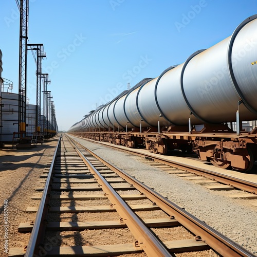 Naklejka premium stocks of grain in granaries. grain deal concept, metal racks for grain storage next to railroads