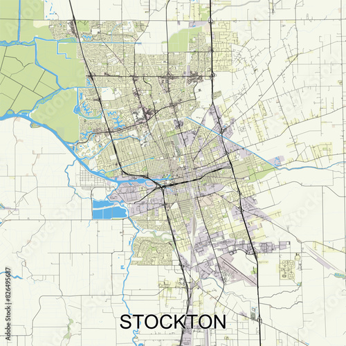 © Somar, Obraz premium Stockton, California, USA map poster art