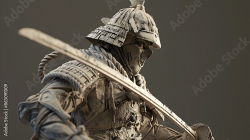 © Humoresque, Obraz premium Stoic Samurai Warrior Wielding Legendary Sword in Dramatic 3D Rendering