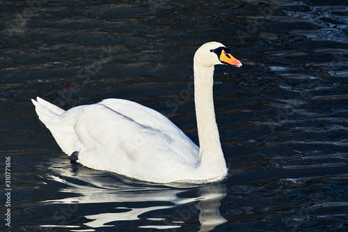 © T_Star, Naklejka premium stolzer weisser schwan schwimmt in dezember sonne