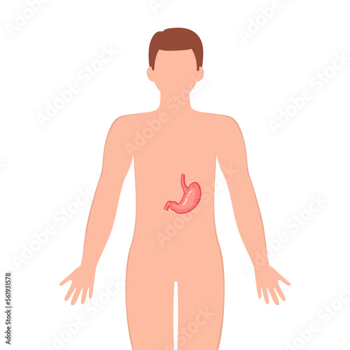 © Narek, Fototapeta premium Stomach organ with human silhouette. Male silhouette with Stomach isolated on white background. Anatomy, medicine concept. vector illustration