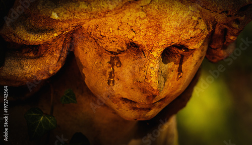 Fototapeta premium Stone angel crying, symbolizing grief, vulnerability, and the idea that even...
