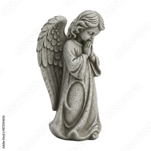 © vadosloginov, Obraz premium Stone angel statue praying on black background