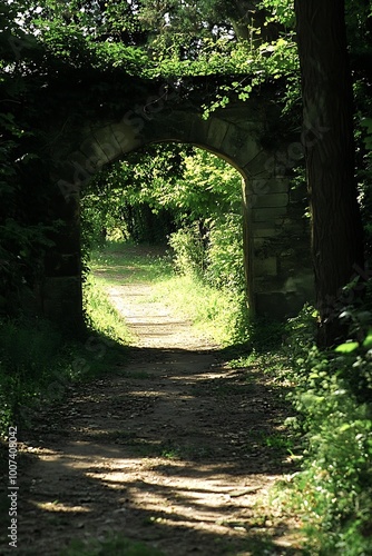 Obraz premium Stone archway in a forest, leading to a mysterious path