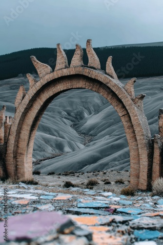 © Sumi, Fototapeta premium Stone archway over sculpted landscape