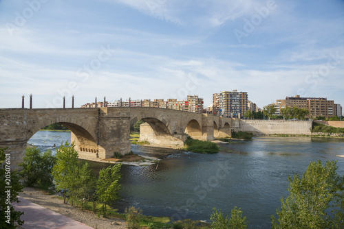 Fototapeta premium Stone Bridge and Ebro River in Zaragoza, Spain