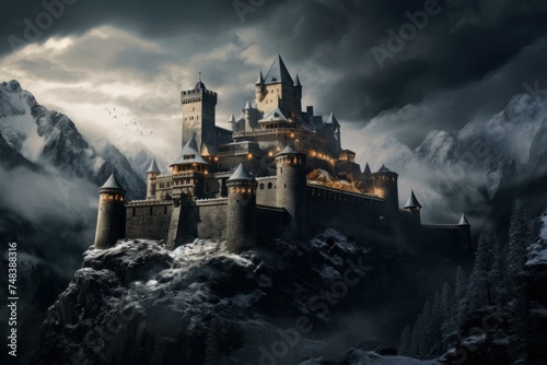 Fototapeta premium Stone-built Medieval castle europe. Tower landmark. Generate Ai