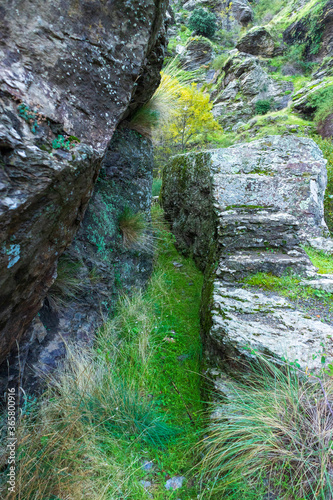 © Javier, Obraz premium stone carved path with green vegetation