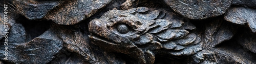 Fototapeta premium Stone Carving of Dragon Head and Scaled Texture