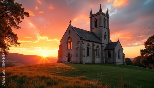 © Darya, Fototapeta premium Stone Church at Sunset