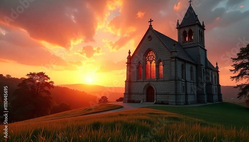 © Darya, Fototapeta premium Stone Church at Sunset