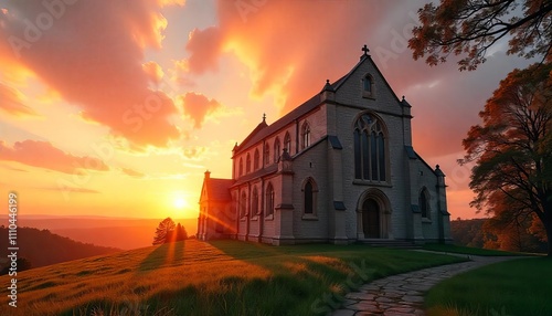 © Darya, Fototapeta premium Stone Church at Sunset