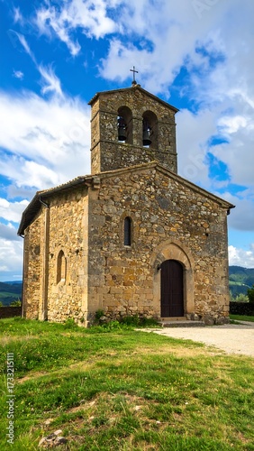 © Bacot, Fototapeta premium Stone church under a partly cloudy sky