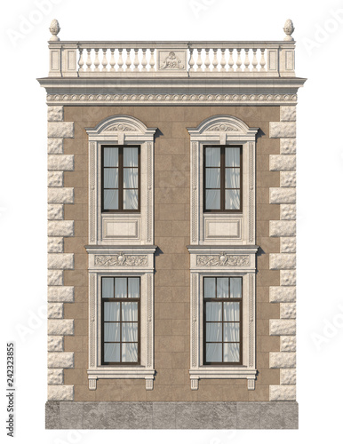 © Dmitriy, Fototapeta premium Stone facade of a classic house with windows. 3d rendering
