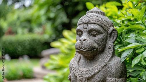 © BROPRADANA, Obraz premium Stone Hanuman statue in lush garden