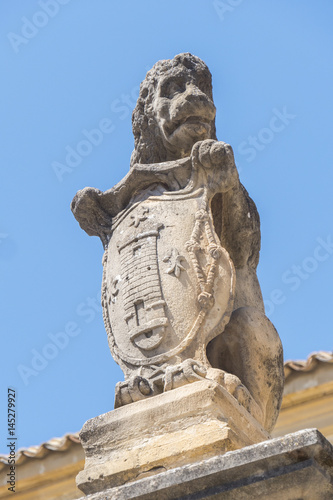 Fototapeta premium Stone lion on the facade Hospital de Santiago, Ubeda, Jaen, Spain