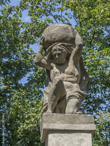 Fototapeta premium Stone men figure carrying stone, baroque statue from Greek mythology of...