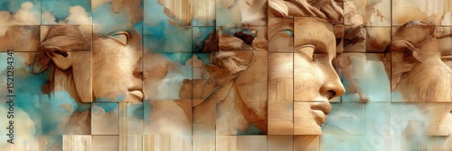 © Svitlana, Fototapeta premium stone mosaic panel with ancient ruins softly blurred behind