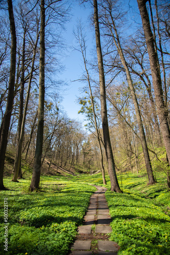 © stenkovlad, Obraz premium Stone path in the spring forest