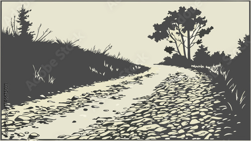 Fototapeta premium Stone path leading through nature serene landscape illustration vector art...