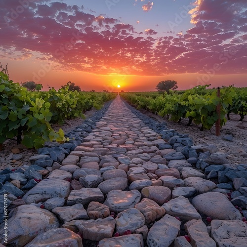 © Kebumen, Fototapeta premium Stone Path Leading to the Sunset