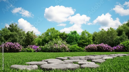 Obraz premium Stone path through lush garden