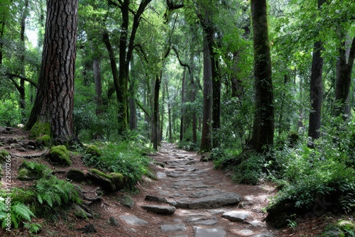 Fototapeta premium Stone Path Through Lush Green Forest