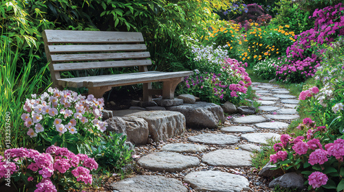 Fototapeta premium stone pathway garden wallpaper,