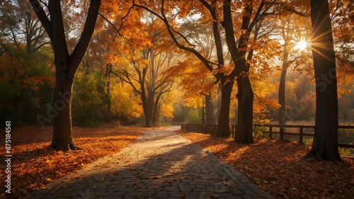 © toni-bles, Fototapeta premium Stone pathway through forest in the fall, Autumn, Serene, Nature in the daytime.