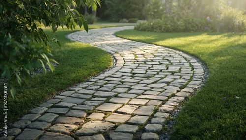 Obraz premium Stone paving for private roads or garden decor, highlighting durable natural...