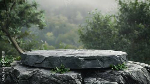 © XtzStudio, Obraz premium Stone Platform in Lush Jungle