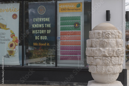 © eugen, Fototapeta premium stone sculpture called EG by Austin Emery and Everie cannabis product at Heddington Av and Eglinton Av W, Toronto