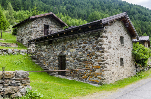 Obraz premium Stone shepherd's house in a peasant village in alpine meadows