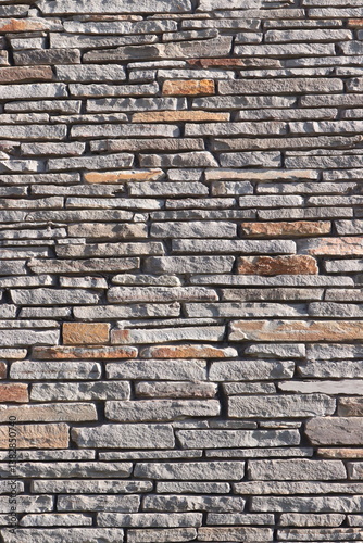 © Kyran, Obraz premium Stone Slate Walls Brickwork Slim Strip Rectangular Bricks uniform neat texture surface background