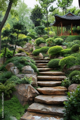 Obraz premium Stone Steps Leading Up To A Traditional Chinese Pagoda