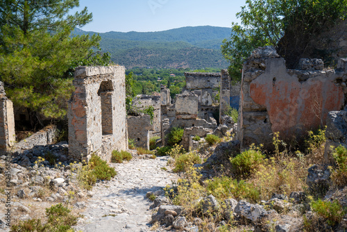 Fototapeta premium Stone street in the ghost town Kayakoy. Kayakoy is abandoned Greek village in...