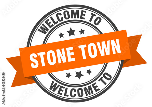 © Aquir, Obraz premium Stone Town stamp. welcome to Stone Town orange sign