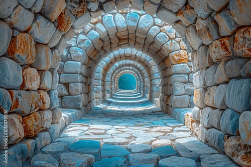 Fototapeta premium Stone tunnel corridor for city municipal services under road and mountain...