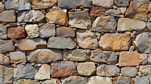 Fototapeta premium Stone Wall Constructed From Assorted Colored Rocks