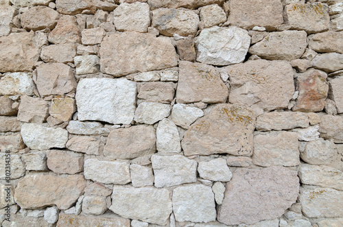 © nkeskin, Fototapeta premium Stone wall, old white stones background