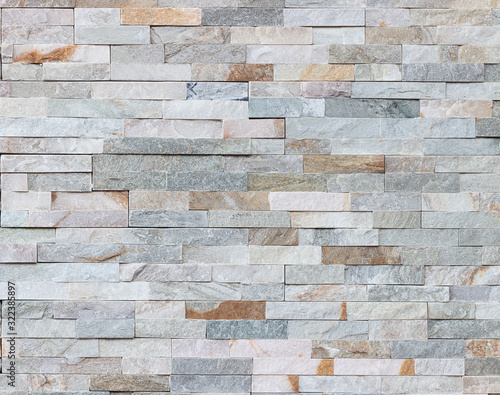 © Bartek, Fototapeta premium Stone wall pattern, decorative background texture. Light brown brick wall background for interior or exterior brick wall building and brick decoration texture.