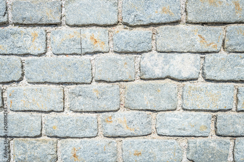 Fototapeta premium Stone wall. Stony blocks texture. Grey stone rock wall. Wall of gray stones bonded with cement.