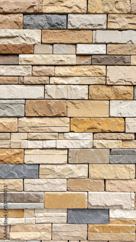 Fototapeta premium Stone Wall Texture: A detailed close-up of a multi-colored stone wall. The texture and pattern are beautiful. It's a classic background for design projects.