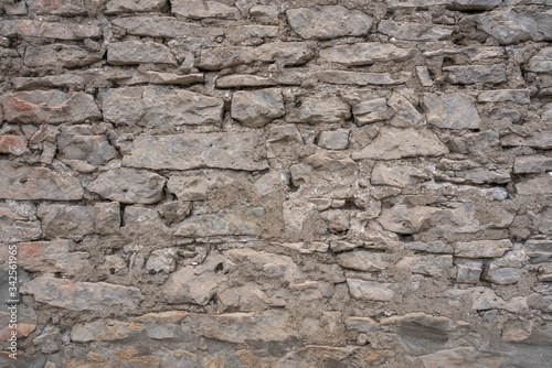 Obraz premium Stone Wall Texture Background with asymmetrical stones stacked together to...