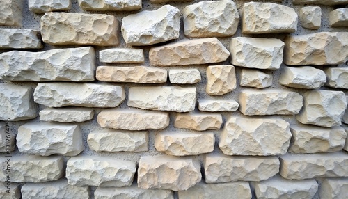 Fototapeta premium Stone wall texture with rough, uneven stones and mortar