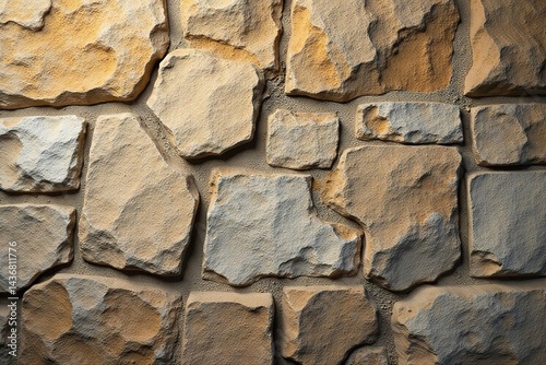 © Krittin, Obraz premium Stone wall with natural cracks forming a pattern, irregular, surface