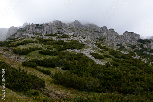 © Jan Hetman, Naklejka premium Stones and rocks on mountainside in fog