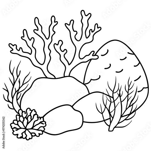 © Shapla, Naklejka premium stones corals reefs outline coloring book page line art drawing