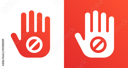 © Icons-Studio, Fototapeta premium Stop hand icon. No entry symbol