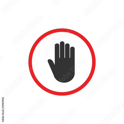 © GlopHetr, Obraz premium Stop hand icon. Stop sign. Vector illustration, flat design.